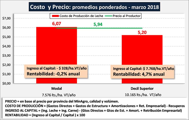 Cuando el precio comienza a superar al Costo de Producción, se genera Ingreso al Capital positivo y por ende Rentabilidad. La decisión de evaluar otra alternativa como destino del capital, surge de comparar la tasa de rentabilidad de la producción de leche y la tasa de la inversión alternativa.