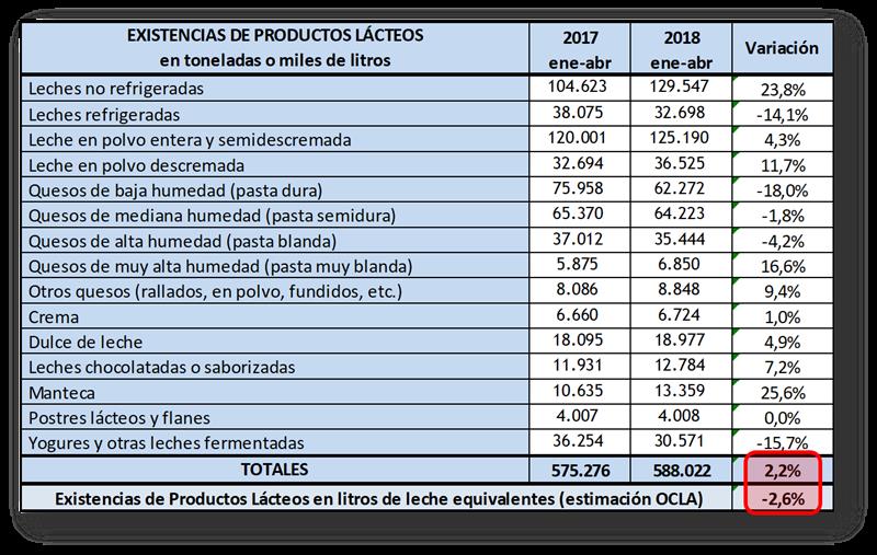 EXISTENCIAS DE PRODUCTOS LÁCTEOS