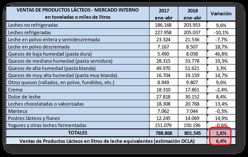 VENTAS DE PRODUCTOS LÁCTEOS EN EL MERCADO INTERNO