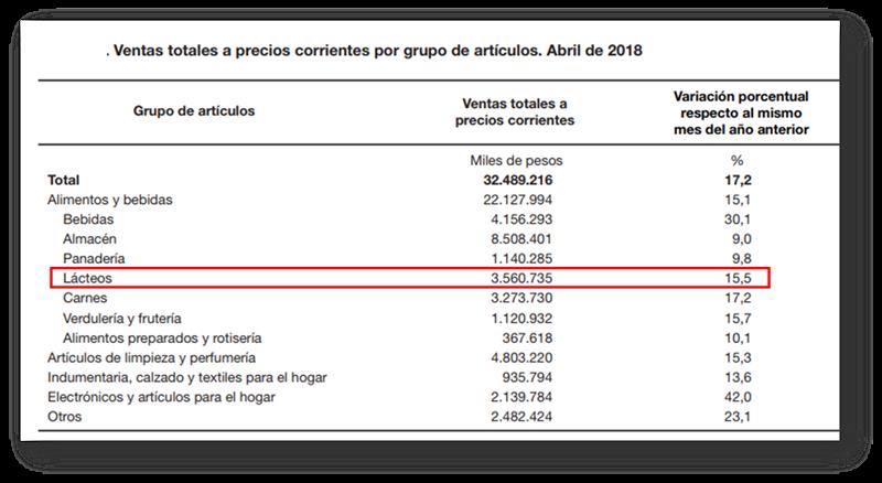 Venta de Lácteos en Supermercados 21/6/2018