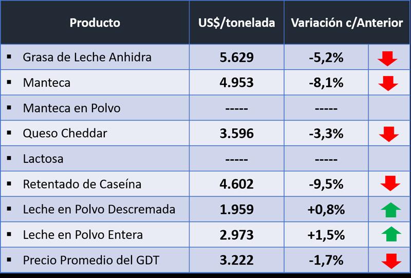 Resultados del Evento N° 216 del Global Dairy Trade (GDT) 17/7/2018
