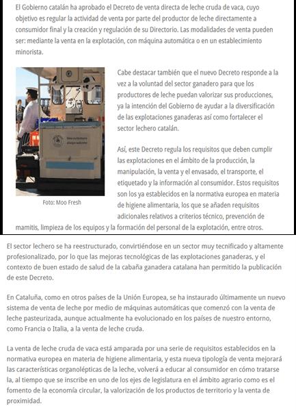 España: Cataluña aprueba el Decreto de venta de leche cruda de vaca