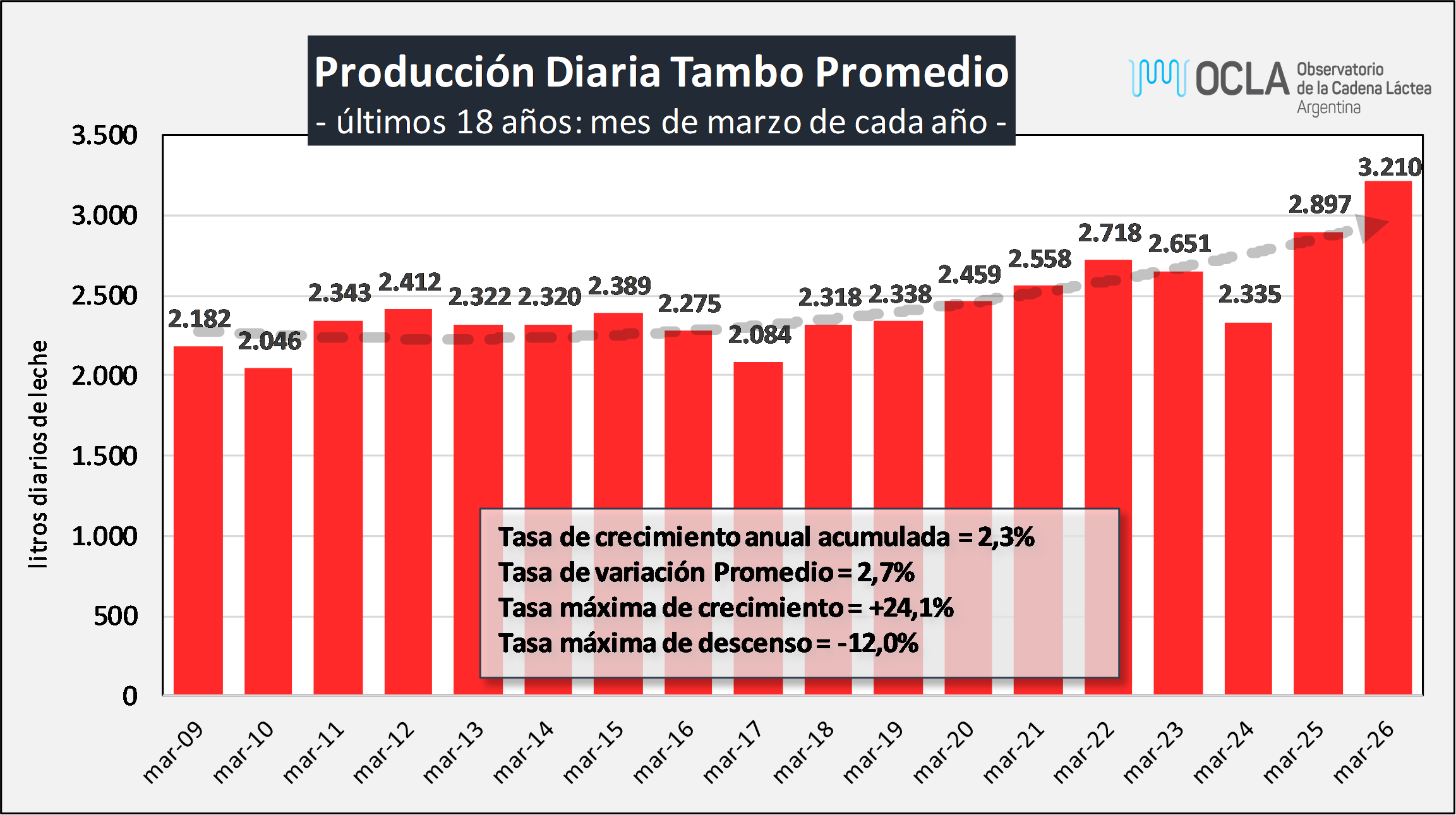 elaborado por el OCLA con datos de producción de la DNL-MAGyP y cantidad anual de tambos SENASA. - Fecha20/7/2018