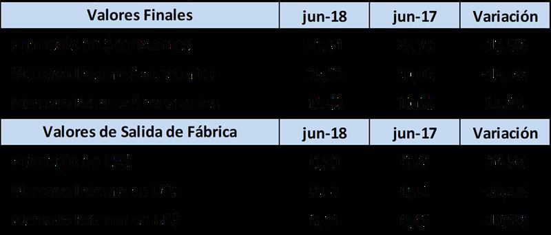 El incremento en el precio interanual al productor fue para el mes de junio superior al incremento del valor de salida de fábrica (+23,6% vs. 20,7% respectivamente). Ambos muy por encima del incremento del valor de mercado al consumidor neto de impuestos (+12,6%).