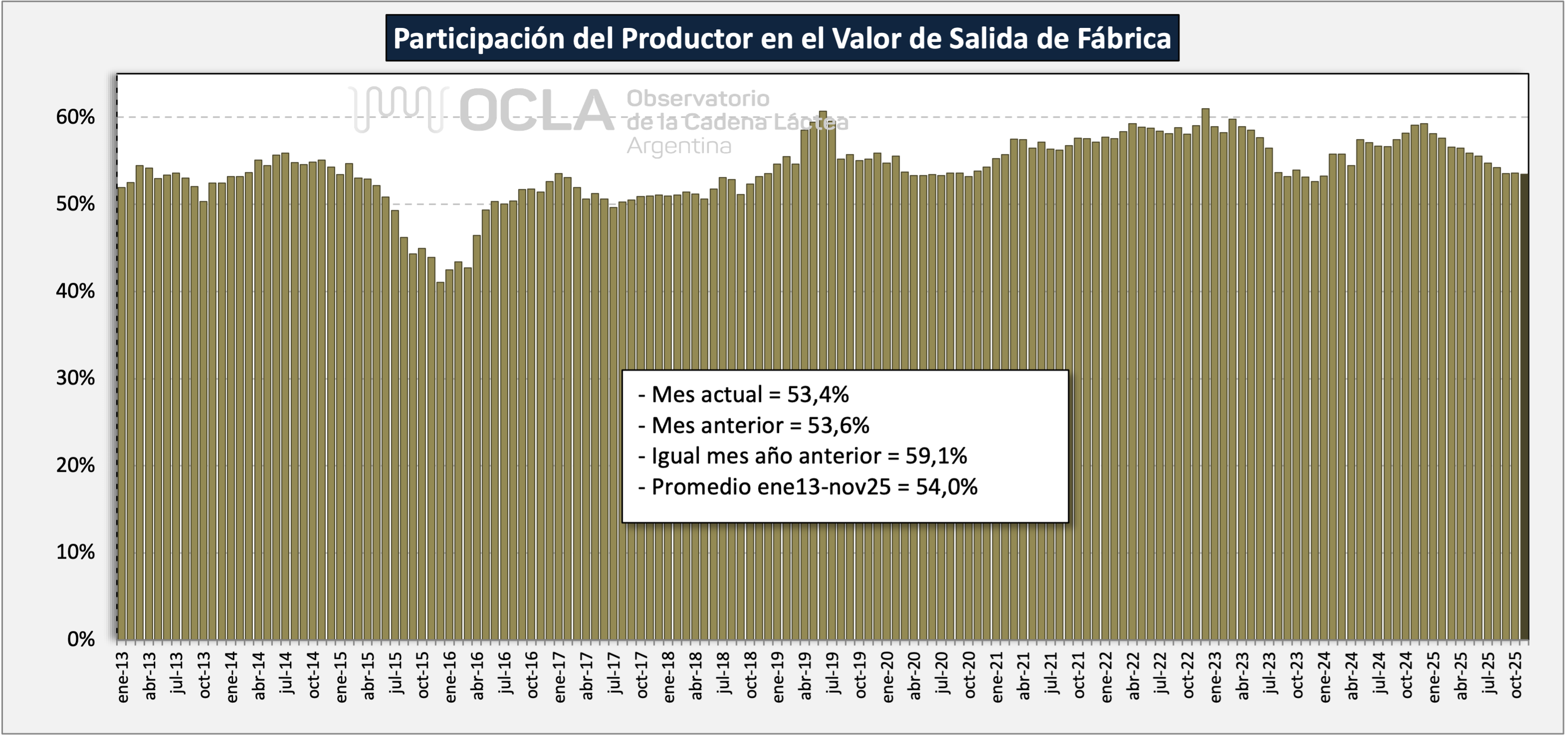 Participacion del productor en el valor de Salida de Fábrica