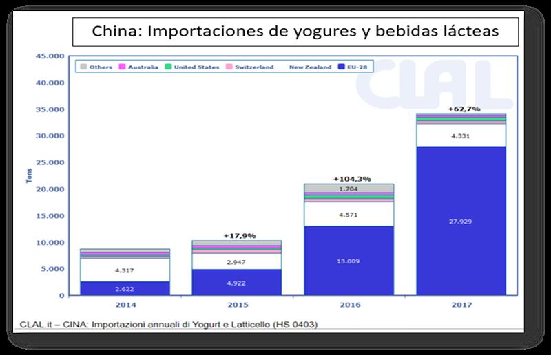 Los productos importados se consideran de mejor calidad desde el punto de vista de los controles sanitarios que los chinos y, por lo tanto, el mercado es interesante tanto para los productores europeos como para los de Australia. Al mismo tiempo, incluso los grandes productores chinos están invirtiendo en exportaciones, presentando su yogur en mercados en el sudeste asiático, como Tailandia, Indonesia o Malasia.