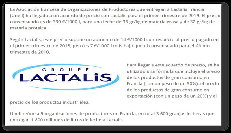 Francia: Lactalis pagará 33 centavos por litro en el 1° trim. de 2019