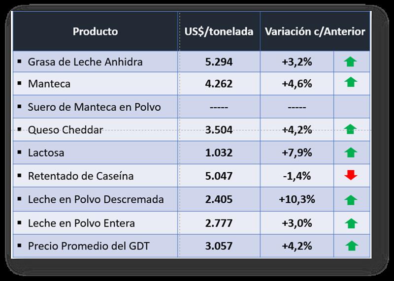 Evento N° 228 - Global Dairy Trade - 15 de enero de 2019