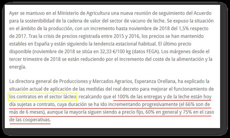 España: algunas nuevas normas sobre contratos lácteos 16/1/2019