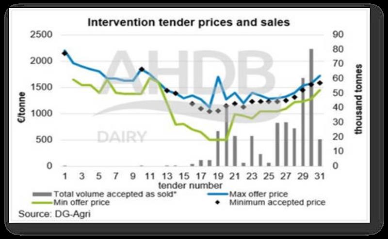 Euros 0,07 centavos/litro de leche producida durante la intervención (jul-15/sep-17) fue el costo para la Unión Europea por la constitución de stocks de intervención, que benefició al sector lácteo.
