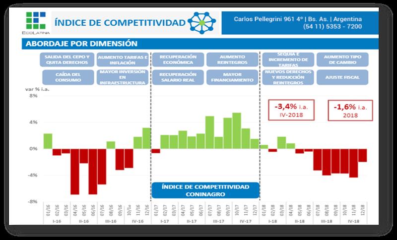 Ecolatina (a quien CONINAGRO encargó la elaboración del índice), explica que el Índice de Competitividad es una construcción metodológica que permite medir y representar, mediante un único número, la evolución conjunta de 18 economías regionales argentinas.