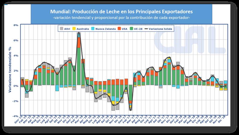 Con lo que el porcentaje ponderado de estos países seleccionados, indica un inicio de año apenas 0,4% por encima del año anterior, lo cual refuerza el proceso de desaceleración de la oferta de leche que viene del año pasado.