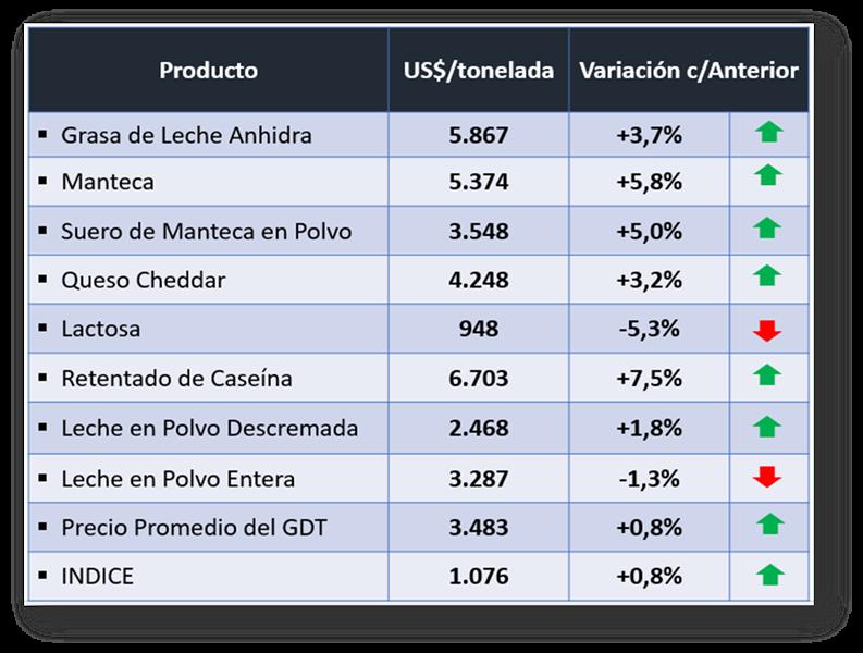 Evento N° 233 del Global Dairy Trade