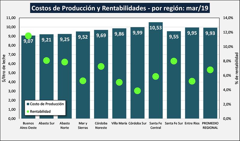 Costos Regionales de Producción de Leche, valores actualizados a marzo de 2019 26/4/2019