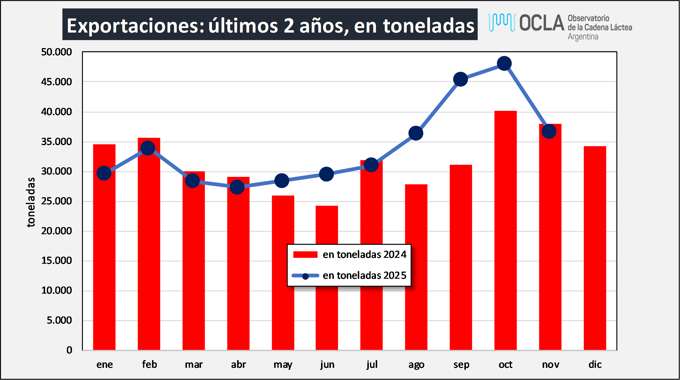 Exportación: últimos 2 años, en toneladas