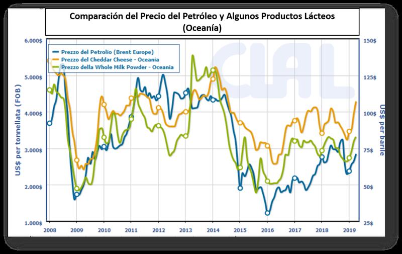 CLAL.it - Comparación entre los precios del petróleo, Cheddar y WMP