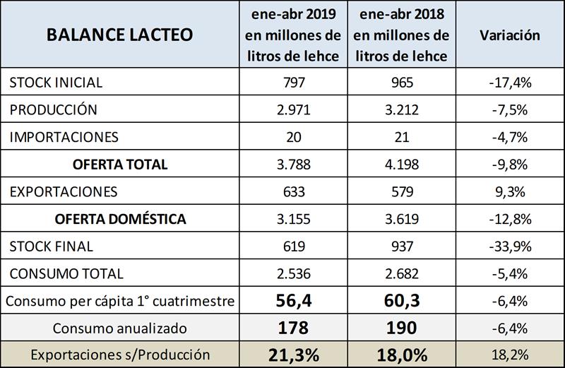 BALANCE LACTEO: 1° cuatrimestre de 2019 24/6/2019