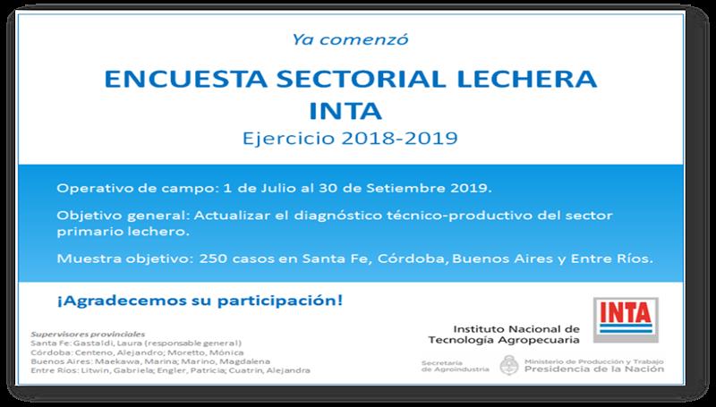 Encuesta Sectorial Lechera - INTA 2018/2019: YA COMENZÓ!!!