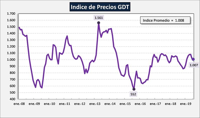 El índice de precios GDT mide el movimiento de todos los precios publicados para los productos vendidos en GDT, mientras que los índices de productos individuales describen el movimiento en los precios para un tipo de producto específico.