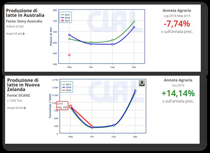 En Nueva Zelanda los pastos están en buenas condiciones. La producción de leche en junio de 2019, el primer mes de la nueva temporada de productos lácteos, fue mayor que el año pasado (+ 14,1%).