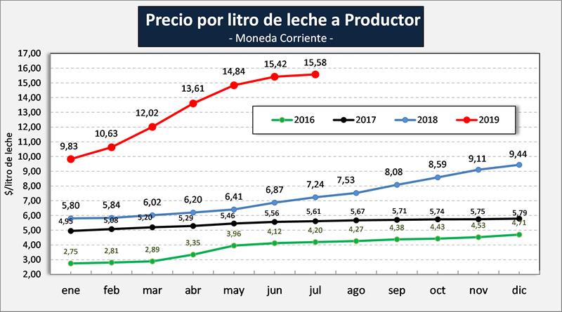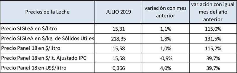 Precios de la leche al Productor – valores a julio de 2019 15/8/2019