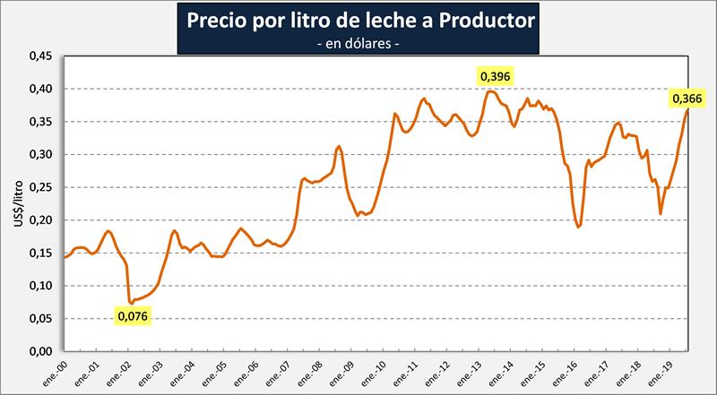 PRECIO DE LA LECHE AL PRODUCTOR – EN DÓLARES POR LITRO