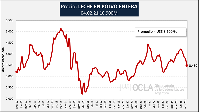 Precios promedios de exportaciones argentinas de Leche en Polvo Entera (Posición 0402.21.10.900M)