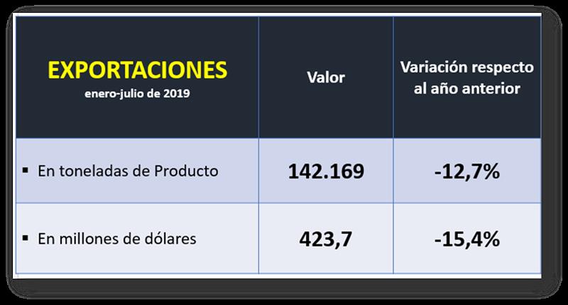 Exportaciones de Productos Lácteos hasta julio de 2019 26/8/2019
