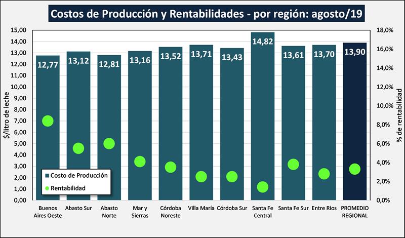 Costos Regionales de Producción de Leche, valores actualizados a AGOSTO de 2019 23/9/2019