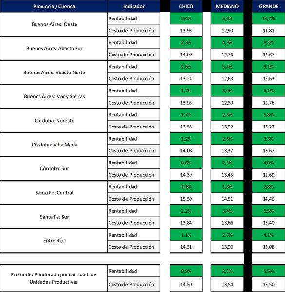 Cuando se analiza cada región y cada estrato pueden observarse diferentes realidades referidas a los niveles de productividad y eficiencia, y aunque tamaño no es sinónimo de eficiencia, los tambos de los estratos más grandes son los que presentan menores costos, mejores precios y por ende mayores tasas de rentabilidad.