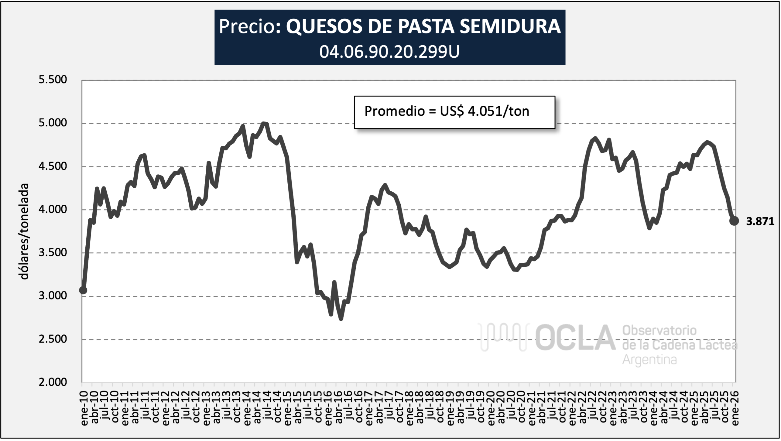 Precios promedios de exportaciones argentinas de Quesos de Pasta Semidura (Posición: 0406.90.20.299U)