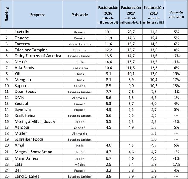 El cuadro está elaborado en base a la facturación en miles de millones de dólares.