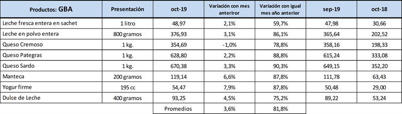 Precios de los lácteos - octubre de 2019 15/11/2019