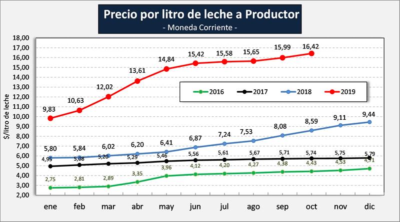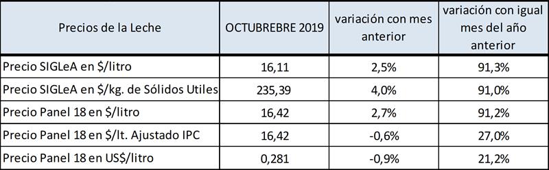 Precios de la leche al Productor – valores a octubre de 2019 19/11/2019