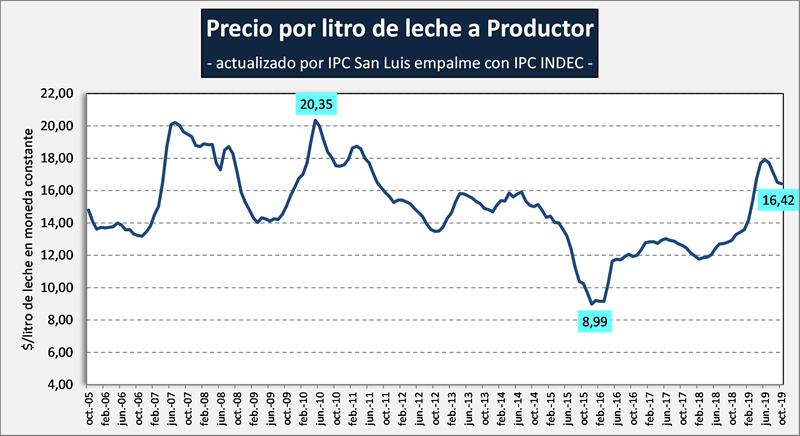 Para disponer de la serie histórica aquí graficada se utilizan los precios del Panel de 18 Empresas de la DNL-MAGyP.