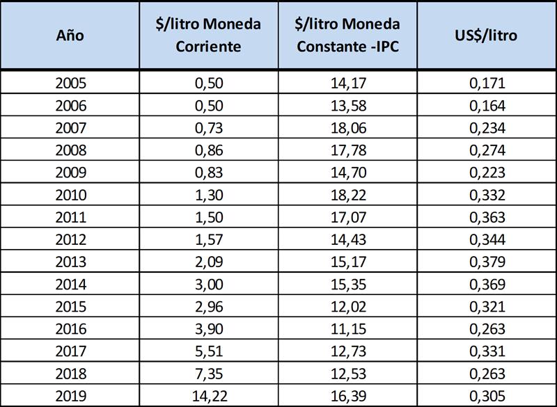PRECIO DE LA LECHE AL PRODUCTOR – EN PESOS POR LITRO – MONEDA CORRIENTE
