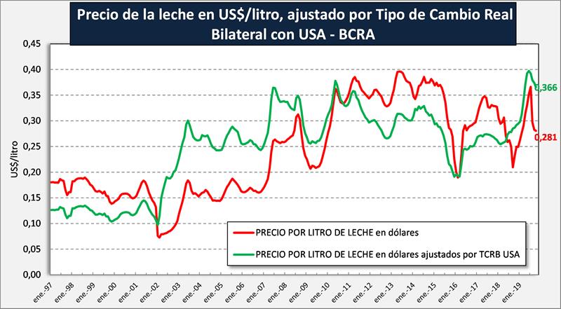 PRECIO DE LA LECHE AL PRODUCTOR – EN DÓLARES POR LITRO