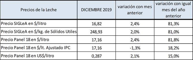 Precios de la leche al Productor – valores a diciembre de 2019 19/1/2020