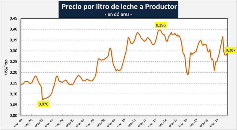 PRECIO DE LA LECHE AL PRODUCTOR – EN DÓLARES POR LITRO
