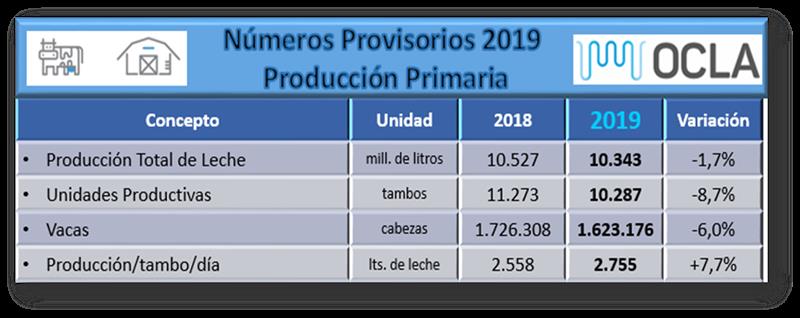 Sorprenden un poco las tasas elevadas de disminución de unidades productivas y cantidad de vacas en 2019 y ello puede deberse a una “depuración” de los registros en éste último año, con lo que, repetimos, lo importante a considerar es la tasa de evolución anual.