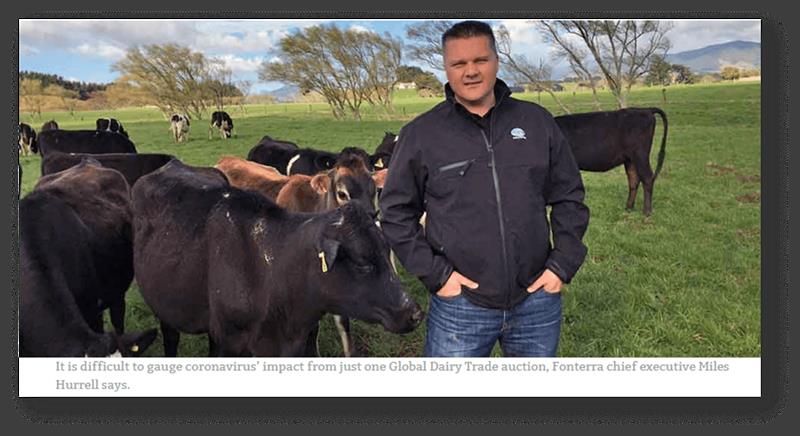Es difícil medir el impacto del coronavirus en una sola subasta de Global Dairy Trade, dice el presidente ejecutivo de Fonterra, Miles Hurrell.