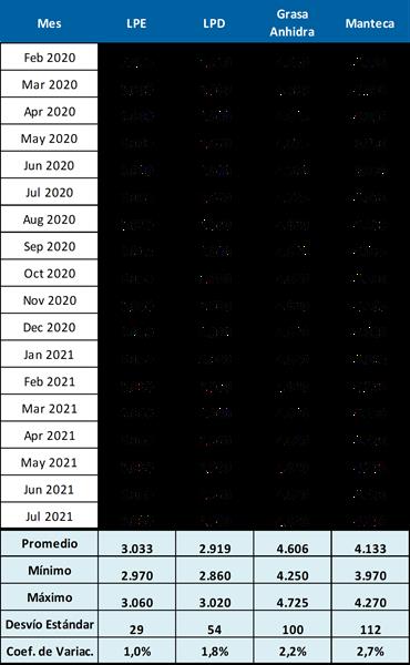 En la jornada de hoy se dio una caída promedio de US$ 60 para leches en polvo entera y descremada (-2,0%) en los precios de los próximos 7 meses. En lo que respecta a grasa anhidra y manteca el mercado se mantuvo sin cambios. Varias situaciones, pero fundamentalmente lo ocurrido en China, le agregan al mercado un altísimo nivel de incertidumbre y por ende de volatilidad.