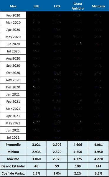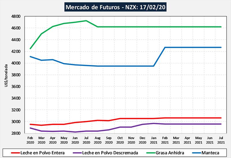 En la jornada de hoy se dio una caída promedio de entre US$ 30 y 40 en leche en polvo entera en él período marzo-julio 2019. En lo que respecta a manteca hubo una baja promedio de US$ 130 promedio entre jul/20 y ene/21. Varias situaciones, pero fundamentalmente lo ocurrido en China, le agregan al mercado un altísimo nivel de incertidumbre y por ende de volatilidad.