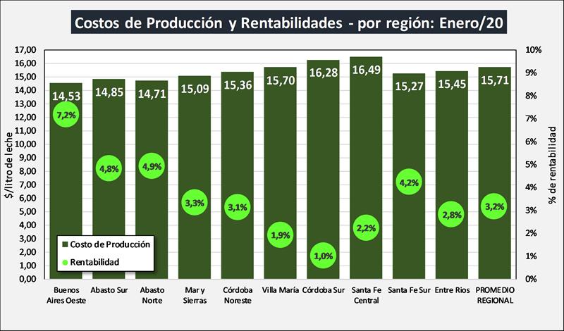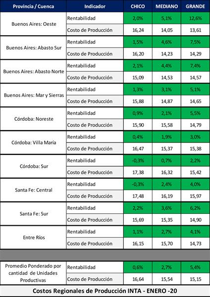 Costos Regionales de Producción de Leche, valores actualizados a ENERO de 2020 18/2/2020