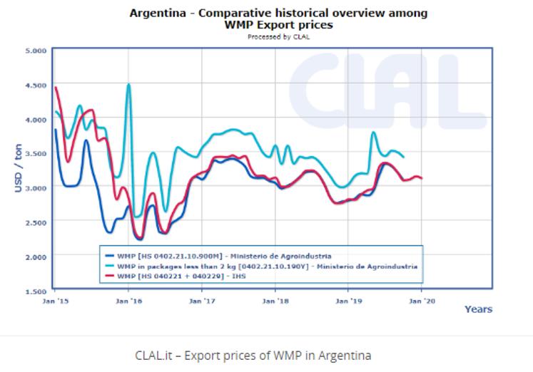En América del Sur, los precios de exportación de LPE y LPD bajaron. Algunos operadores de productos lácteos atribuyen la caída de los precios al efecto del coronavirus en los mercados internacionales. Además, para el LPE, otros contactos sugieren que también el nuevo arancel de exportación argentino está presionando los precios. Sin embargo, aún no se sabe, con certeza, qué les espera a estos mercados.