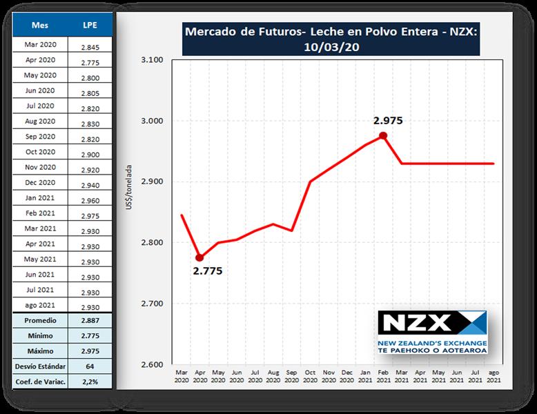 Mercado de Futuros NZX - Leche en Polvo Entera 10/3/2020