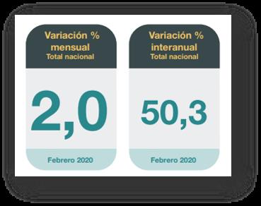 El nivel general del Índice de precios al consumidor (IPC) representativo del total de hogares del país registró en febrero una variación de 2,0% con relación al mes anterior, y el acumulado anual fue del 50,3%.