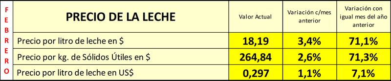 Precio de la Leche - Panel 18 Empresas - febrero 2020 18/3/2020