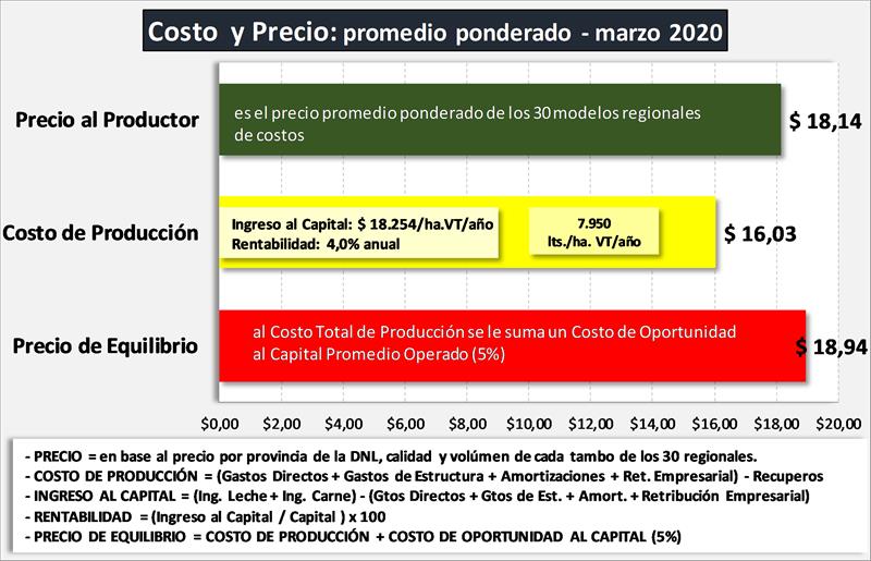 para el mes de marzo 2020 fue de $ 18,08/litro (SIGLeA) y $ 18,43/litro (Panel