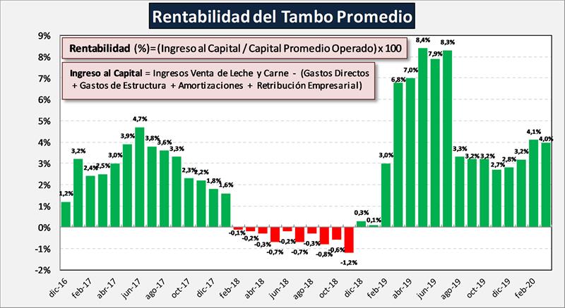 · La rentabilidad fue 0,1 puntos porcentuales inferior respecto al mes anterior y 1,0 con respecto a marzo 2019;